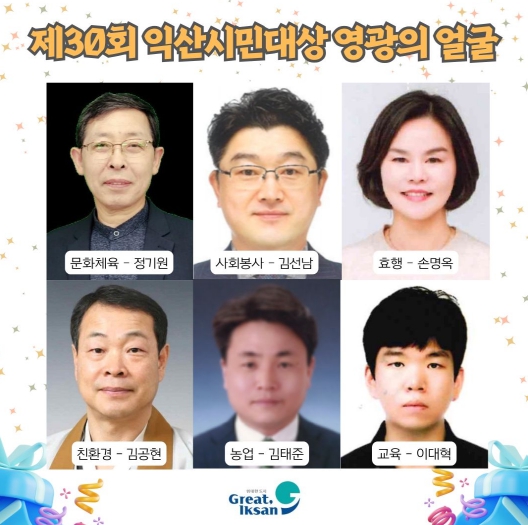 한편, 익산시민대상 시상식은 오는 10월 3일 이리시·익산군 통합 30주년 기념 주요 행사와 함께 진행되는 '시민의 날 기념식' 행사장에서 열린다.