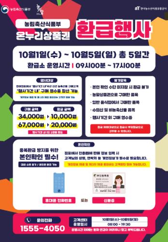![]() 추석맞이 농축·수산물 온누리상품권 환급행사 진행 |