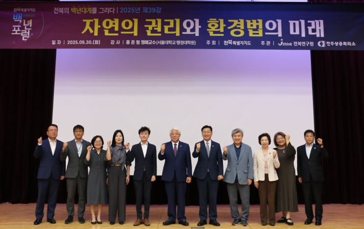 전북연구원이 30일 전북특별자치도청 대회의실에서 개최한 전북 백년포럼 제39강 초청연사로 강연에 나선 홍준형 명예교수(서울대 행정대학원)는 ‘자연의 권리와 환경법의 미래’라는 주제 강연을 통해 이같이 지적했다.