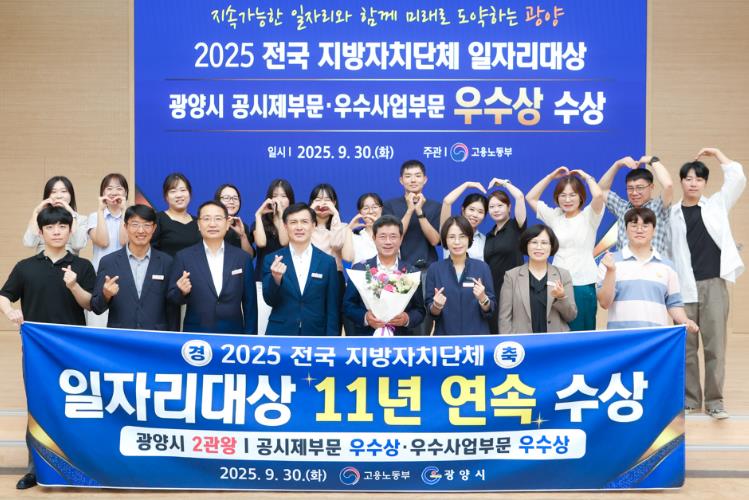 ![]() 광양시, ‘전국 지방자치단체 일자리대상’ 공시제‧우수사업 부문 우수상 |