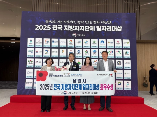 ![]() 남원시, 「2025년 전국 지방자치단체 일자리대상」 최우수상 수상 |