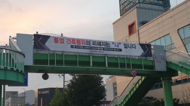 특히 이번에 제작된 현수막에는 위반 건축행위에 대한 경각심을 일깨우고 건축 행위 전 이행 절차를 알리는 문구(“불법 건축행위의 피해자는 나입니다. 단 1㎡라도 건축허가 절차를 반드시 이행해야 합니다.”)를 담아 군민들이 건축법규를 철저히 준수하도록 유도하고 있다.
