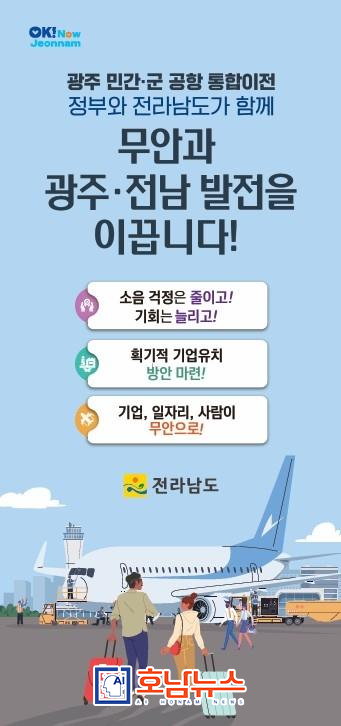전라남도는 광주 민간·군 공항의 무안국제공항 통합이전을 더 이상 미룰 수 없는 시대적 과제이자 도민의 오랜 염원으로 규정하고 강력히 추진하겠다고 밝혔다.