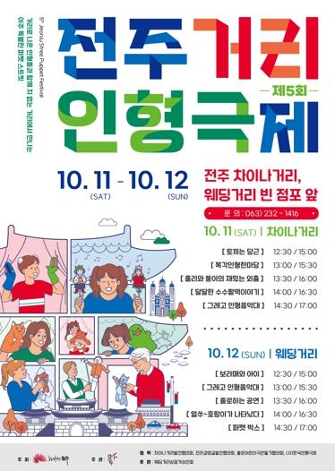전주시가 주최하고 사단법인 꼭두가 주관하는 ‘제5회 전주거리인형극제’가 오는 11일과 12일 이틀간 전주 차이나거리와 웨딩거리에서 개최된다.
