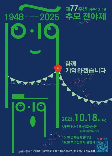 시 관계자는 “이번 전야제는 여순10·19사건의 희생을 추모하고, 그 기억을 문화와 예술을 통해 이어가는 자리”라며 “시민 모두가 평화와 인권의 가치를 되새기는 시간이 되길 바란다”고 말했다.