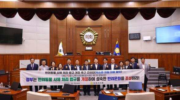 ![]() 나주시의회, ‘반려동물 사체 처리 법규 개정 촉구 건의안’ 채택 |