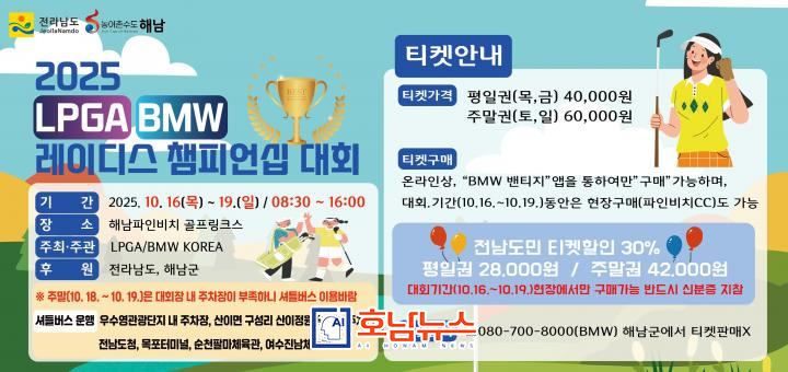 오는 16일부터 19일까지 해남 파인비치 골프링크스에서 열리는 ‘LPGA BMW 레이디스 챔피언십’은 호남권 최초로 개최되는 LPGA 정규투어 대회로, 전 세계 170여 개국에 생중계된다.