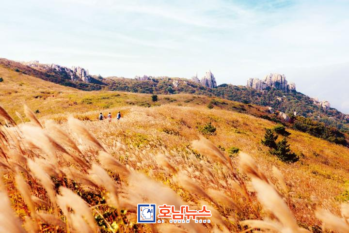 Cheongwansan in Jangheung, one of the five major mountains in Honam, is transformed into a spectacular sea of silver grass in October. The swaying silver grass against the backdrop of the Dadohae Sea and rugged rock formations evokes the unique charm of the southern region, stretching across a vast ridge of 1.3 million pyeong (approx. 4.3 million m²), showcasing the wonder of nature.