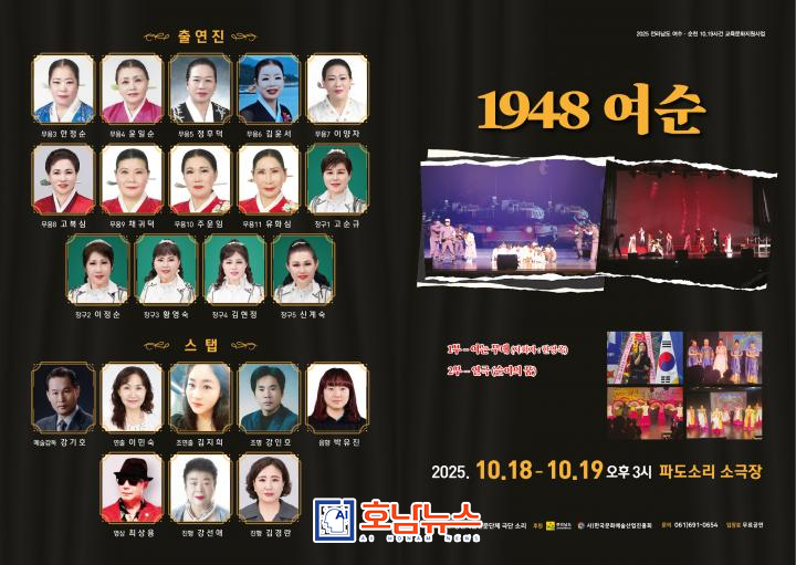 The theater troupe Sori will stage the play 1948 Yeosu at 4 p.m. on the 18th and 19th at the Pado Sori Small Theater in Yeosu. Through local songs, poetry, and choreography, the production emotionally portrays the realities of Yeosu in 1948 and the tragic significance of the incident, conveying historical empathy and healing through art.