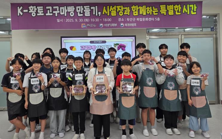 이번 프로그램은 무안군 대표 특산물인 황토고구마를 활용해 청소년들이 직접 고구마 빵을 만들어보는 체험형 활동으로, 반죽 만들기부터 나만의 빵 디자인, 굽기까지 전 과정을 스스로 체험할 수 있도록 구성됐다.