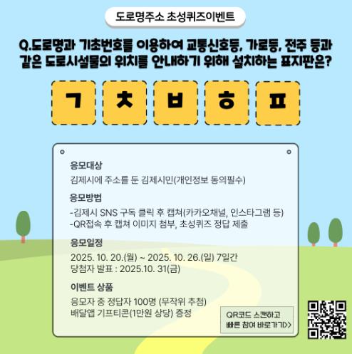 ![]() 김제시, 도로명주소 SNS “초성퀴즈 이벤트”실시 |