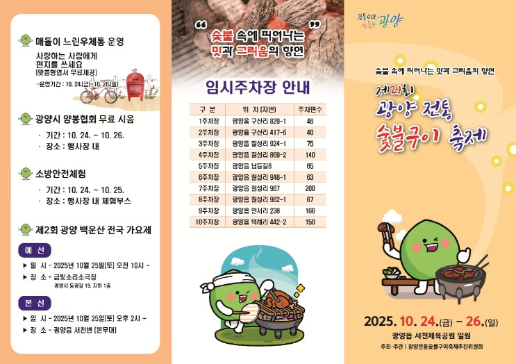 ![]() 숯불 향 가득한 가을 미식 축제, 제21회 광양전통숯불구이축제 24일 개막 - 광양읍(리플렛) |