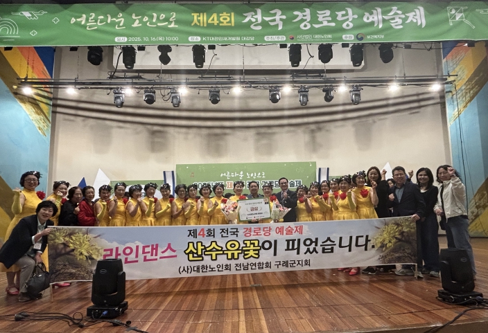 ![]() 구례군 노인회(라인댄스팀), 2025년 제4회 전국 경로당 예술제서 ′금상′수상 |