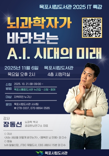 ![]() 목포시립도서관, 뇌과학자 장동선 박사 초청 특별 강연 운영 |