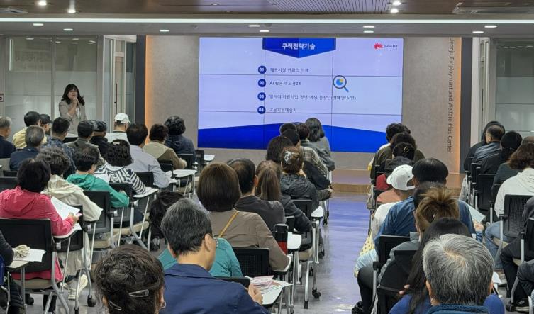 시는 21일 전주고용복지플러스센터에서 ‘2025년 하반기 구직전략기술 특강’을 열고, AI를 활용한 자기소개서 작성법과 연령·성별 맞춤형 취업지원 서비스 활용법을 안내했다.
