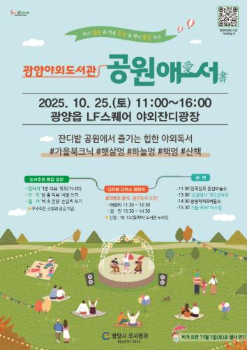 ![]() 도서관, 공원으로 나왔다!... 광양시, 25일 ‘야외도서관’ 운영 |