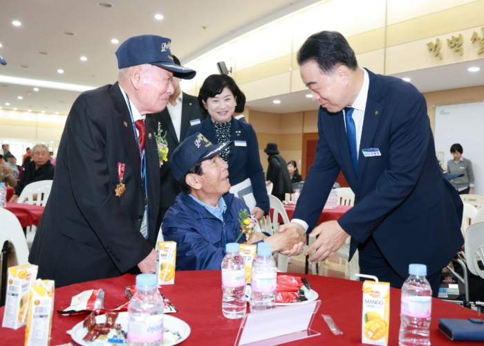 ![]() ‘제7회 보훈가족 한마음 위안 행사’에서 보훈가족을 격려하는 구복규 화순군수 |