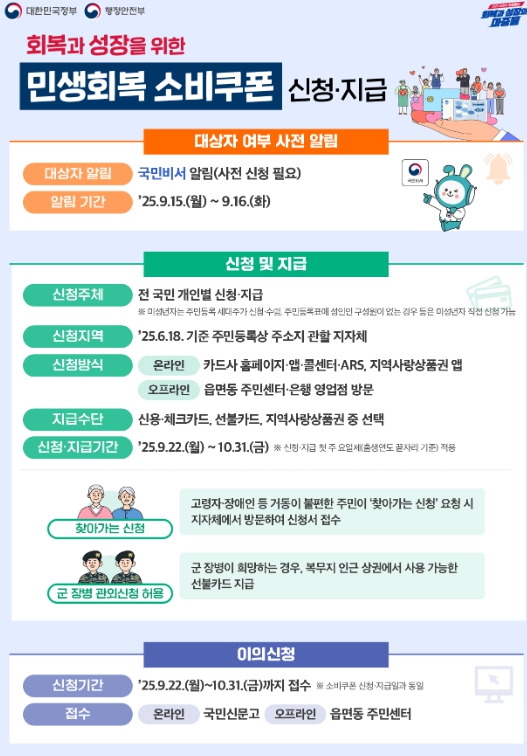 신청은 카드사 온라인 홈페이지나 읍·면·동 행정복지센터 방문을 통해 할 수 있으며, 오는 10월 31일까지 신청하지 않으면 쿠폰을 발급받을 수 없다.