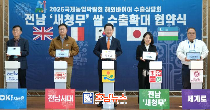 ![]() 전남 ‘새청무’ 쌀 수출확대 협약식 / 사진제공=전라남도 |
