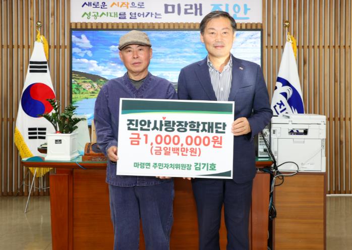 ![]() 진안군 마령면 주민자치위원장 김기호, 진안사랑장학재단에 장학금 기부 |