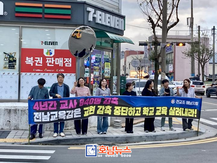 전남 해남지역 학교들이 교원 감축으로 교육 현장 붕괴 위기에 직면한 가운데, 전교조 해남지회(지회장 조경애)가 강력한 반대 활동을 이어가고 있다.
