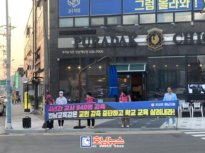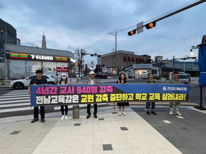 ![]() 해남교육지원청 교원감축 켐페인 / 사진제공=전교조해남군지회 |