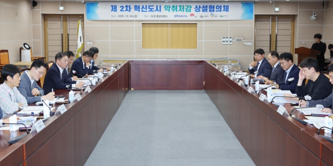 도는 24일 도청 종합상황실에서 ‘제2차 혁신도시 악취저감 상설협의체’ 회의를 열고, 전주‧익산‧김제‧완주 등 4개 시군과 유관기관, 전문가 등 40여 명이 참석한 가운데 악취저감 종합대책 추진상황을 점검하고 향후 대응방안을 논의했다.