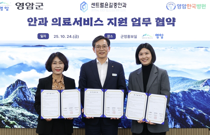 협약에 따라 영암군은 수술 대상자 발굴·연계를, 영암한국병원은 수술 전 무료 기초검사를, 센트럴윤길중안과는 1년에 12명의 백내장 무료수술·진료를 담당한다.