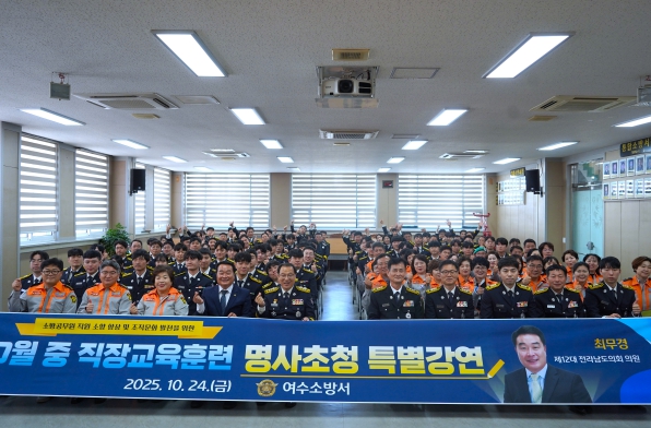이어 “오늘 귀중한 강연을 통해 공직자의 자세를 일깨워주신 최무경 의원님께 깊이 감사드리며, 여수소방서도 시민의 신뢰에 보답하기 위해 더욱 안전한 여수를 만드는 데 최선을 다하겠다”고 덧붙였다.