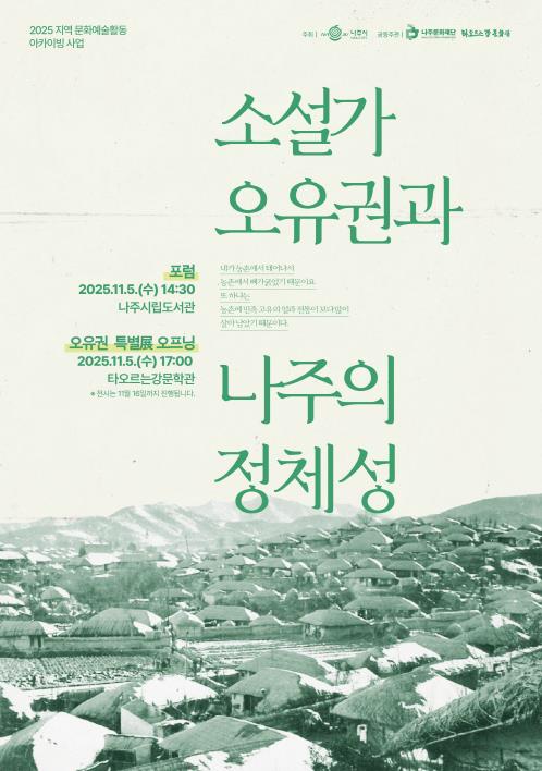![]() 나주문화재단이 11월 5일 ‘소설가 오유권과 나주의 정체성’을 주제로 포럼과 전시를 진행한다. |