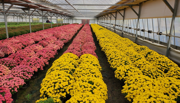![]() 기술센터 내 재배된 국화 화분과 읍내 시가지에 전시중인 모습 |