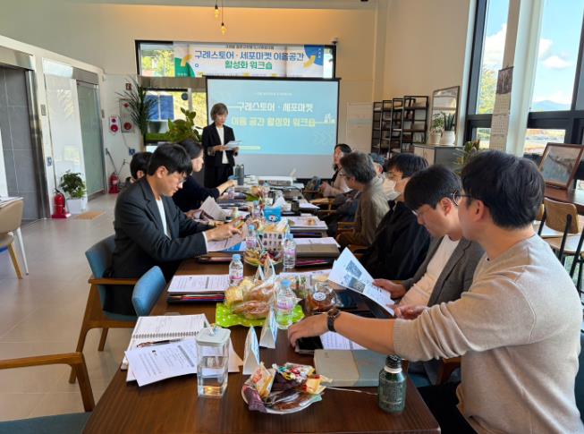 이번 워크숍은 구례스토어·세포마켓·구례주조장·통합어울림센터·그때그날기록관·음악당 등 거점시설 간 이음 공간 연계와 시너지 창출 방안을 모색하기 위해 마련됐다.