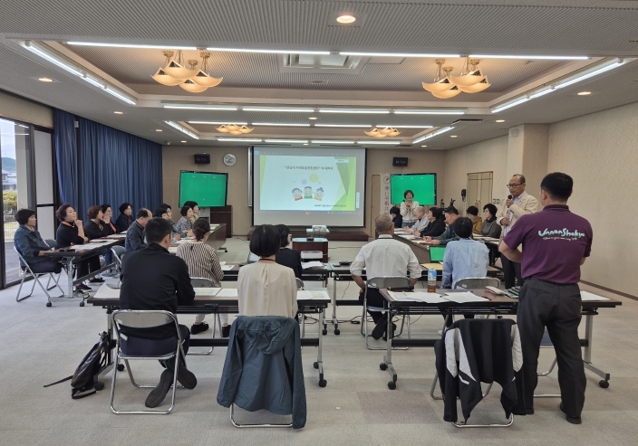 ![]() 강진군 직원들이 일본 운난시 지역포괄케어센터에서 지역포괄케어 시스템에 대하여 설명을 듣고 있다. |