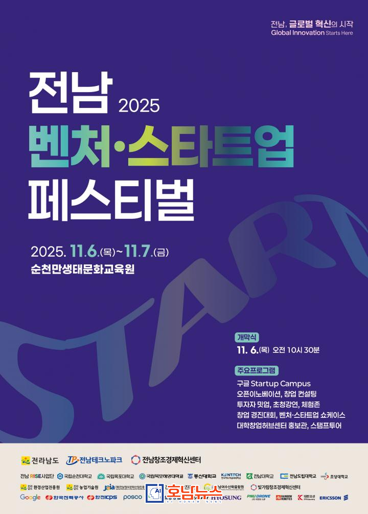 Under the theme “Challenges and Adventures of Ventures & Startups: Jeonnam Starts Innovation,” the festival is expected to attract approximately 3,000 participants, including local venture and startup companies, aspiring entrepreneurs, university students, and investors.