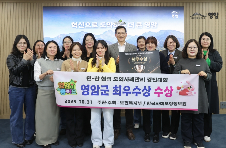 영암군이 10/31일 보건복지부 주최, 한국사회보장정보원 주관으로 대전에서 열린 ‘2025년 민관 협력 모의 사례관리 경진대회’에서 최우수상을 수상했다.