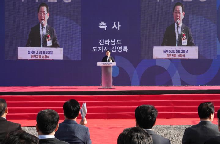 김영록 전남도지사는 축사에서 “많은 분들의 헌신으로 무사히 이 시점까지 올 수 있었음에 감사드린다.”며 “앞으로 LNG허브터미널이 안전하고 성공적으로 완공돼 여수·광양국가산단의 경쟁력을 높이고, 전남이 글로벌 에너지 허브로 도약하는 발판이 되길 바란다”고 밝혔다.