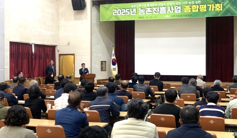 ![]() 나주시는 6일 농업기술센터 대강당에서 ‘2025년 농촌진흥사업 종합평가회’를 열고 올해 추진한 농촌진흥사업의 주요 성과를 공유하고 향후 발전 방향을 모색했다. |