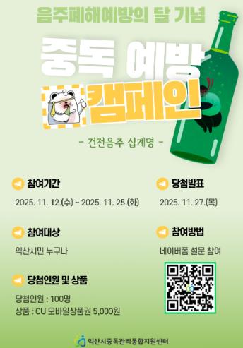 오는 12일부터 25일까지 진행되는 온라인 캠페인은 '중독예방 퀴즈 및 나만의 금주 철칙 세우기'를 주제로, 시민 누구나 참여할 수 있는 형태로 운영된다.