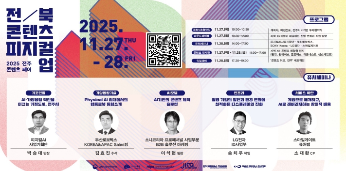 특히 이번 행사는 전북 메타버스 지원센터의 성과공유회인 ‘2025 전북 콘텐츠 피지컬 업’과 연계해 진행돼 가상융합 콘텐츠와 인공지능 기술의 발전 방향을 함께 모색하는 자리로 꾸며질 예정이다.