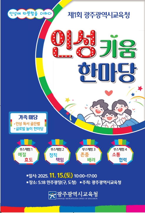 시교육청은 오는 15일 5·18민주광장에서 ‘제1회 인성 키움 한마당’ 행사를 개최한다.