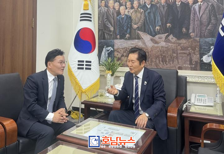 On the 12th, Kang also met with Democratic Party Chair Chung Cheong-rae, along with lawmakers Kwon Hyang-yeop, Moon Geum-joo, and Kim Moon-su, explaining in detail the urgent need for national budget support.