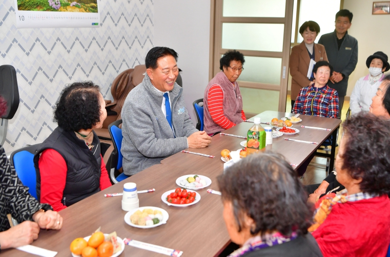 ![]() 19일 남면 죽분경로당을 찾은 김한종 장성군수가 어르신들과 환담을 나누고 있다. |