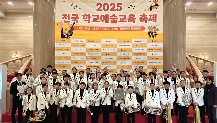 ![]() 여수청소년윈드오케스트라(단장 배정미)가 지난 19일 경희대학교 평화의전당에서 열린 ‘2025년 전국 학교예술교육 축제’에서 초등 관악 부문 교육부장관상(대상)을 수상했다. |