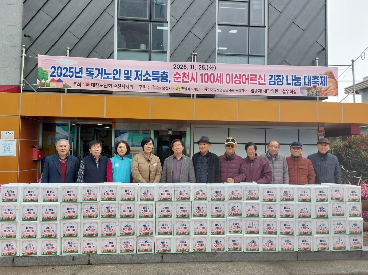 김영수 순천시 노인회장은 “추운 겨울일수록 이웃에 대한 관심과 온정이 더욱 절실한 시기”라며 “이번 김장 김치 나눔이 어르신들의 따뜻한 겨울나기에 도움이 되길 바란다”고 말했다.