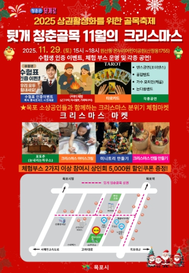 이번 행사는 연말 분위기를 느끼며 주민과 상인이 함께 참여할 수 있는 크리스마스 테마의 체험형 골목 축제로, 어린이부터 어르신까지 전 세대가 즐길 수 있는 다양한 프로그램으로 구성됐다.
