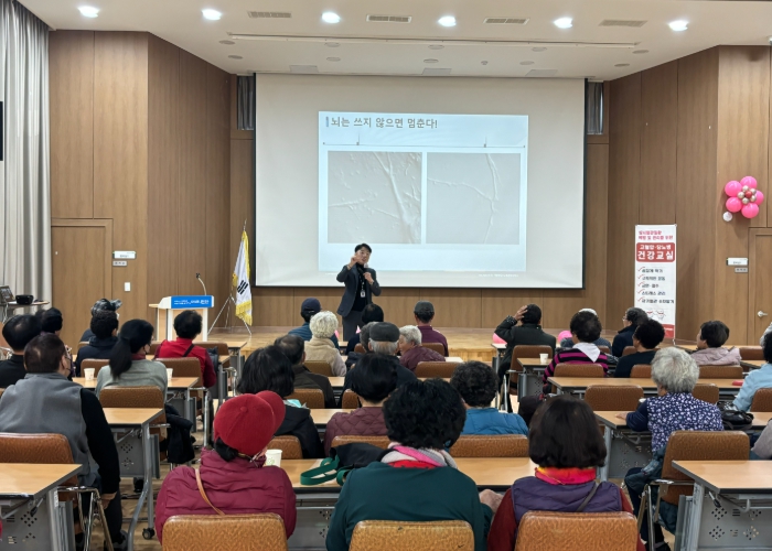 교육은 윤영섭 국민연금관리공단 전문 강사의 ‘건강하게 장수하는 생활 습관’과 김선주 원광대학교 임상영양사의 ‘건강한 노년기를 위한 올바른 식습관’을 주제로 진행됐다.