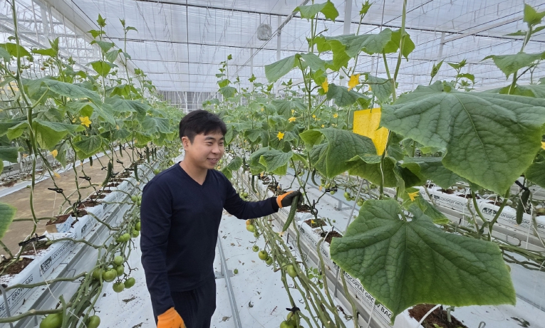 작목 전환을 시도해 첫 수확에 성공한 조인준 청년 농업인은 “토마토 중심 재배에서 벗어나 시장성이 높은 품목을 찾아보고 싶었다”며 “스마트팜 시스템이 있어 처음 도전하는 오이 재배도 안정적으로 준비할 수 있었고 이곳에서 많이 배우고 성장해 장수에 성공적으로 정착하는 청년 농부가 되고 싶다”고 말했다.