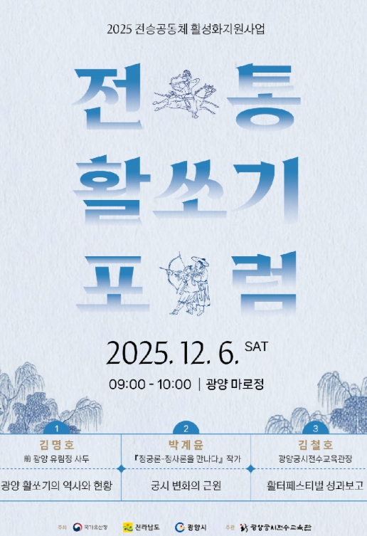 이러한 활동은 활쏘기를 단순한 체험이 아닌 지역의 중요한 전승문화로 자리매김시키는 기반이 됐으며, 이번 포럼은 그 성과를 종합적으로 공유하고 앞으로의 광양 활쏘기 전승 활성화 방향을 논의하는 의미 있는 시간이 될 전망이다.