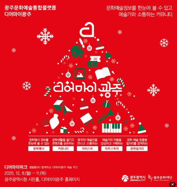 온라인에서는 ‘디어마이광주 포인트마켓’이 동시에 진행된다. 출석체크, 게시글 작성 등을 통해 적립한 포인트로 ▲전동민 작가의 광주 전경 스카프 ▲박현주 작가의 운해 텀블러 ▲디어마이광주 공식 굿즈 등 다양한 상품을 교환할 수 있어 시민 참여가 더 확대될 전망이다.