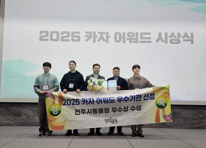 전주동물원은 올해 환경부와 한국동물원수족관협회(KAZA)가 주관한 ‘2025년 동물복지 분야 우수동물원’으로 선정돼 ‘KAZA 우수동물원상’을 수상했다고 8일 밝혔다.
